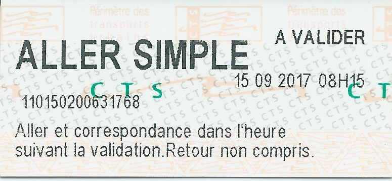 - Aller et correspondance dans l'heure suivant la validation. Retour non compris.