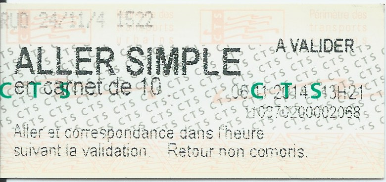 Contenu : “ALLER SIMPLE en carnet de 10”
