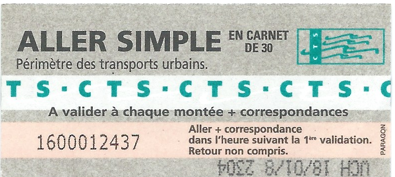 - ALLER SIMPLE en carnet de 30