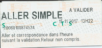 ALLER SIMPLE A TARIF REDUIT Ticket magnétique papier -