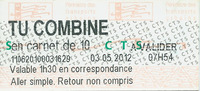 TU COMBINE en carnet de 10 Ticket magnétique papier -